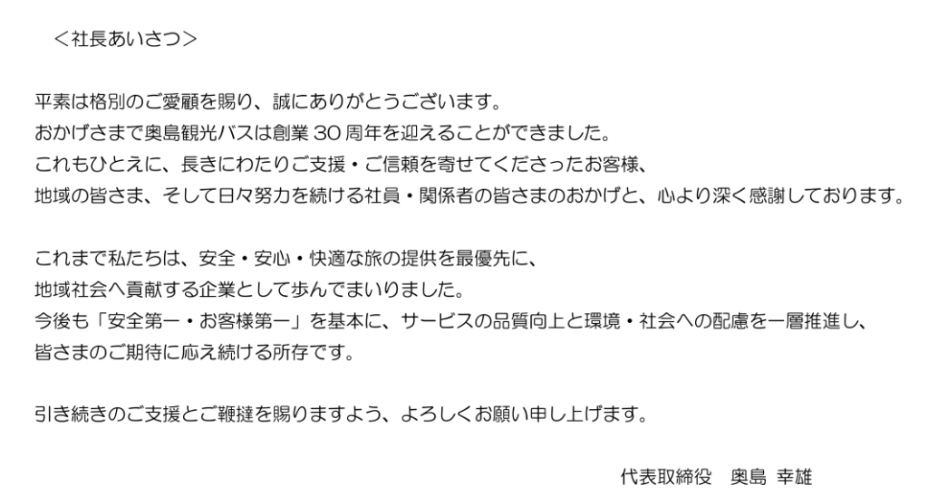 奥島観光バスからのお知らせ